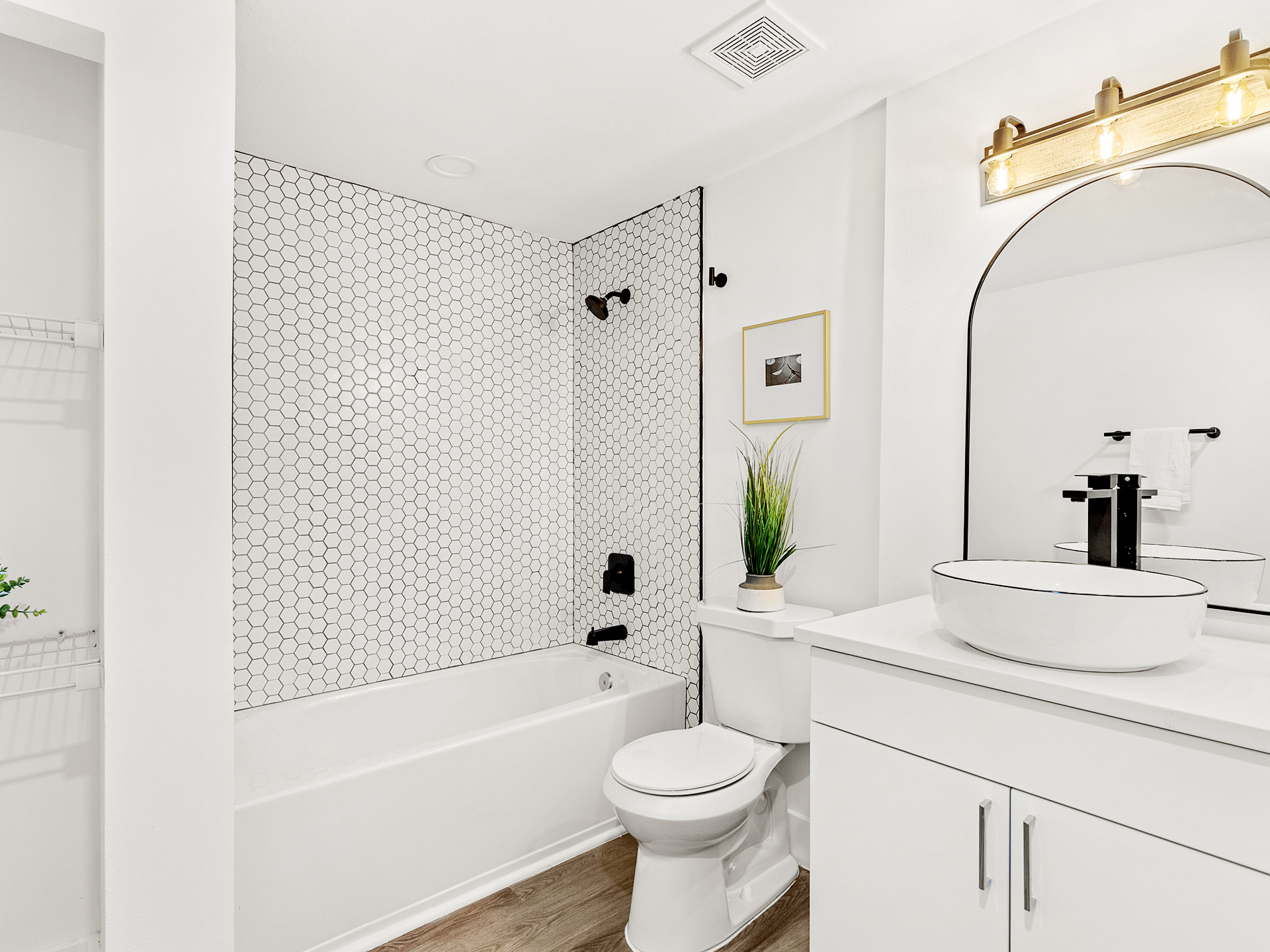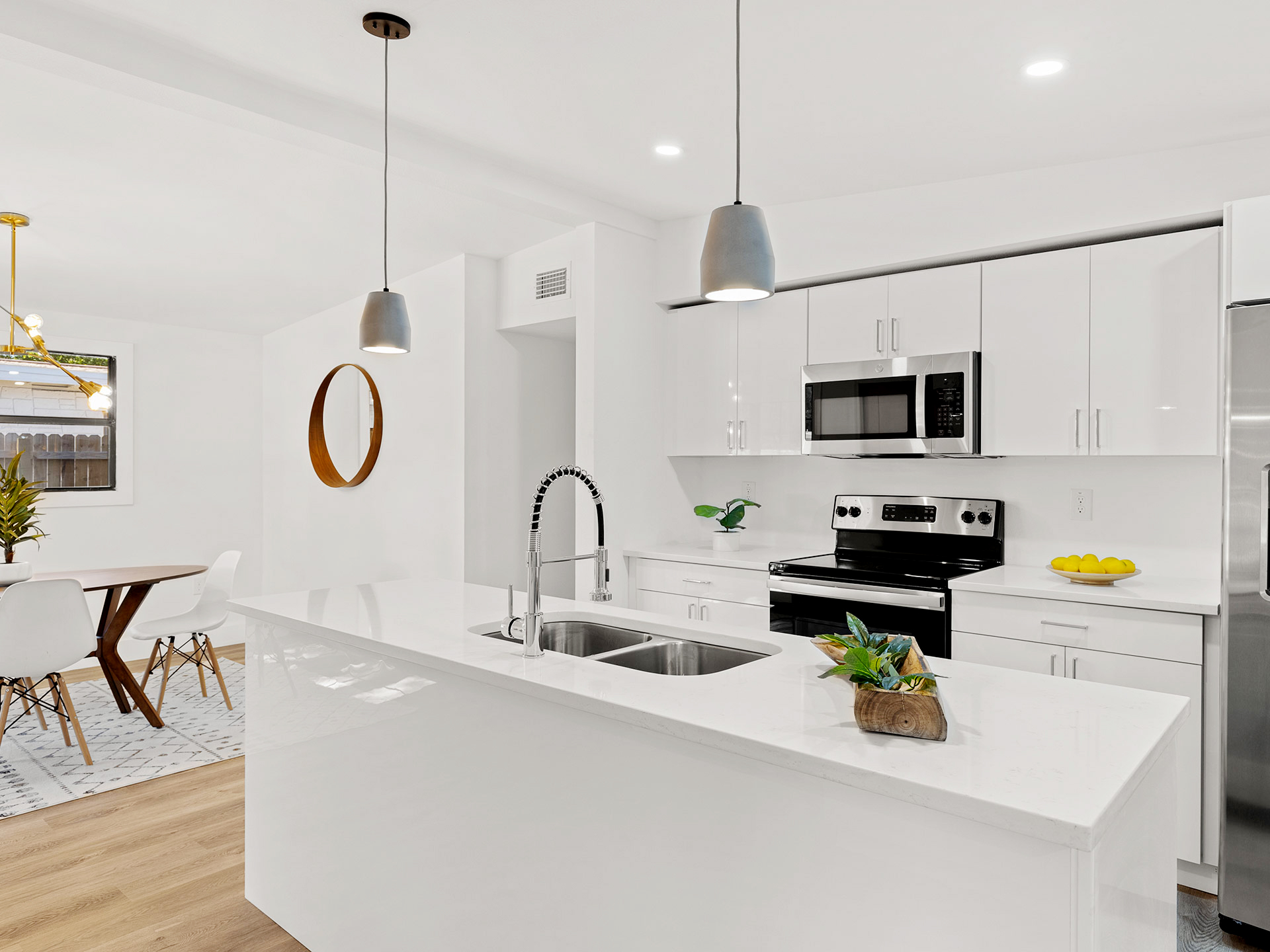 Modernización de fachada y parquización de espacios verdes. Se recuperaron aberturas originales, renovando paredes, cielorrasos con luminarias empotradas. Griferías y sanitarios de última generación en cocina y baños.